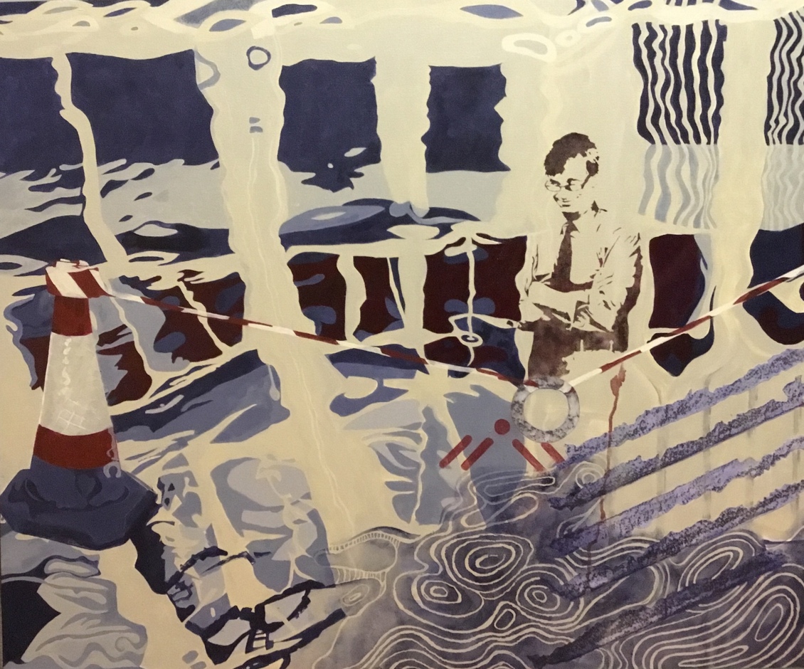 The Hacienda to the Gay Village A journey by the canal in the centre of Manchester. Acrylic on canvas. Date: January 2018